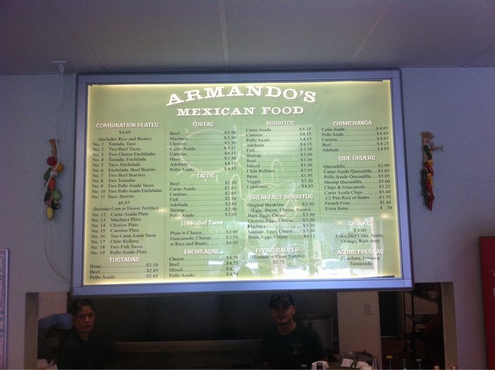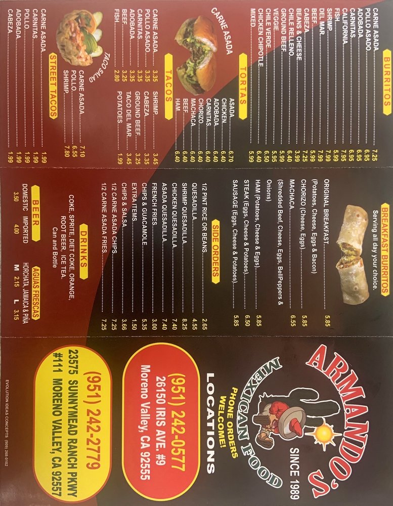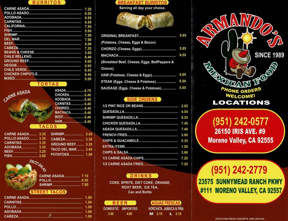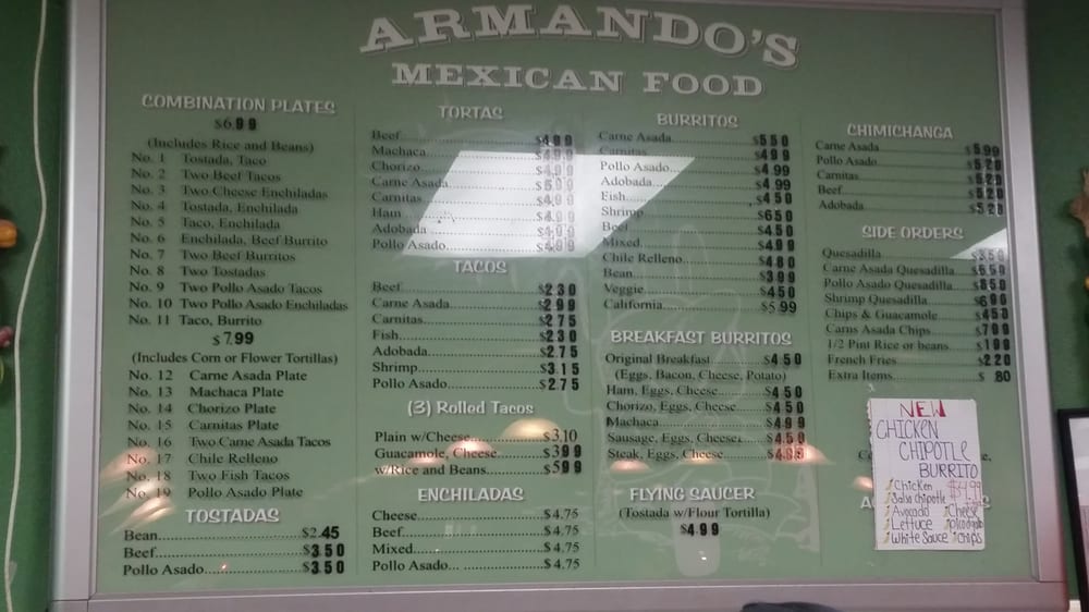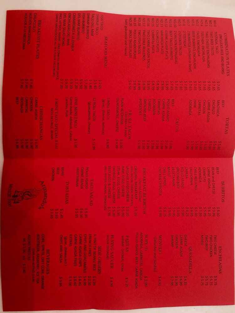 Armandos Mexican Food Menu